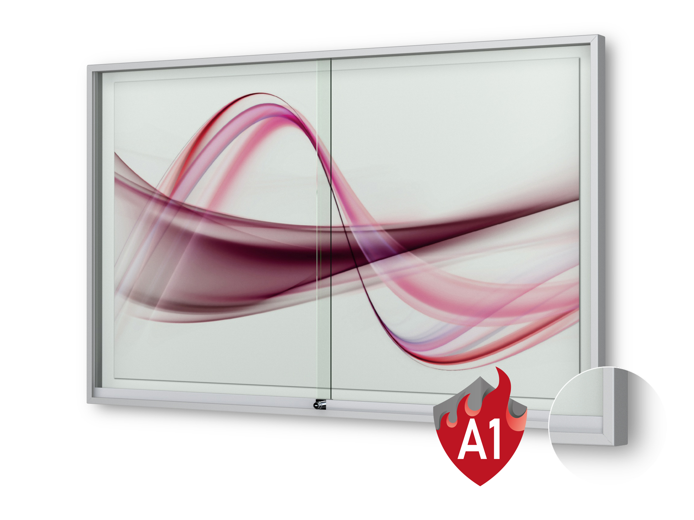 Merkmale Schaukasten: Brandschutz, Wandmontage, abschliessbar, magnetisch, mit Schiebetüren