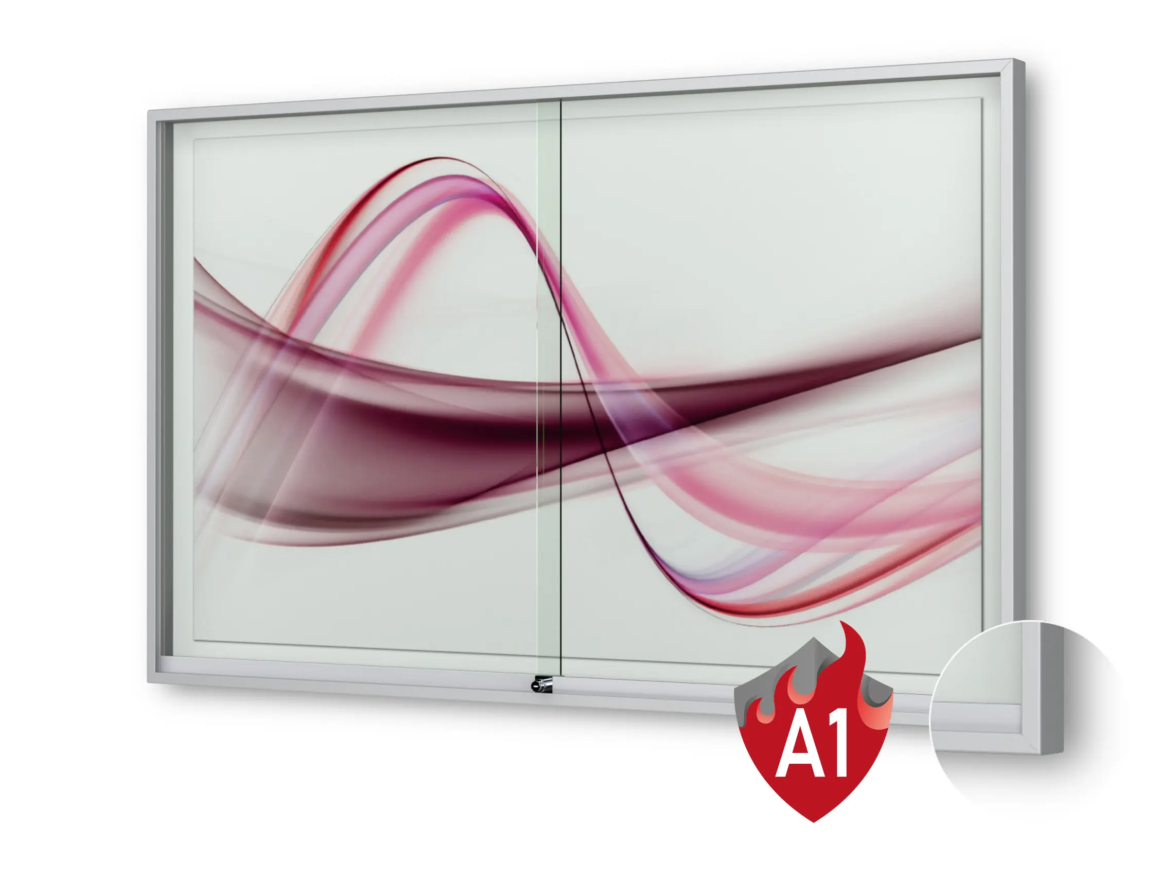 | Merkmale Schaukasten: | Brandschutz, Wandmontage, abschliessbar, magnetisch, mit Schiebetüren |