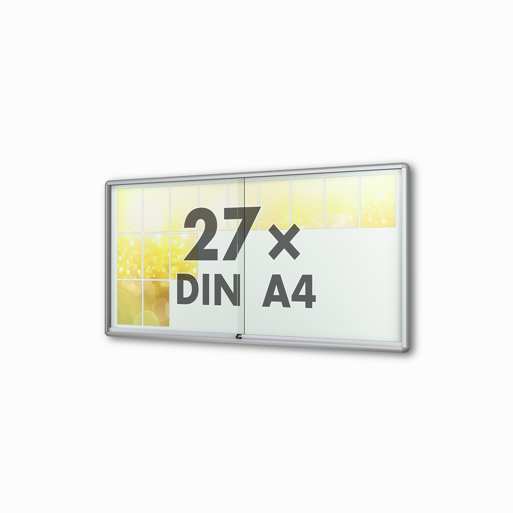 27 x DIN A4 Schaukasten Moveo - "die Schulvitrine" - mit Brandschutzklasse A1 - Rollengelagerte Schiebetüren✓ abschließbar✓ ESG-Sicherheitsglas✓